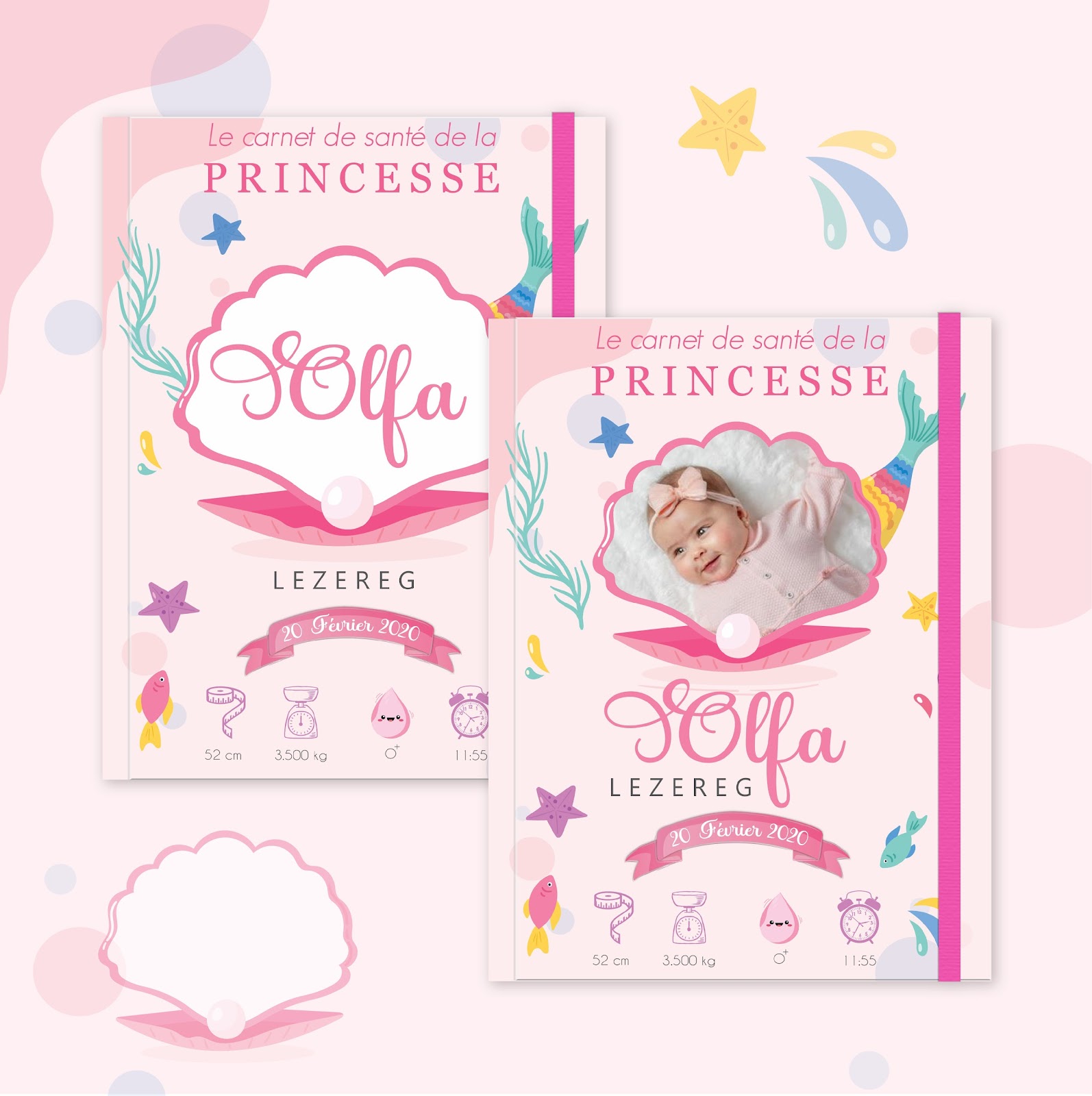 Couverture du carnet de santé Fille – Coquillage